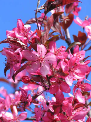 Dark purple leaves emerge earlier in the spring and hold their rich color longer into summer than other cultivars. A sport of Newport, this cultivar grows faster and develops a dense head supported by a stronger, sturdier trunk. This very hardy ornamental plum performs well where climates are extreme.
