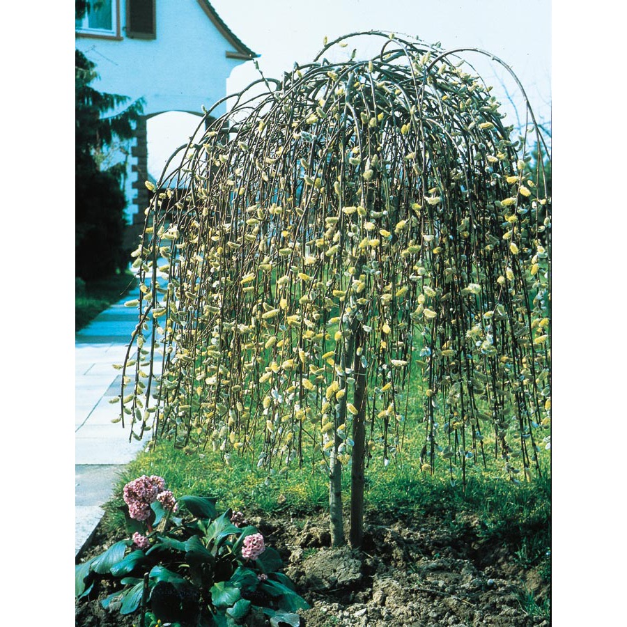 This ornamental weeper doesn’t outgrow its space. Soft silvery catkins emerge along the gracefully weeping branches in late winter, then open to reveal
