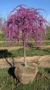 A highly prized red-leaved selection of Eastern Redbud. Delicate magenta rose flowers appear before the foliage. Does best in partial sun.