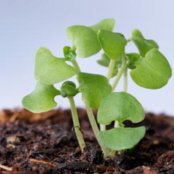 Seeds are generally hardy, but to start them properly they do need gentle nurturing so they can produce healthy, vibrant plants. In general, seeds should be started 4-6 weeks before the recommended planting time so the seedlings will be large and strong enough to withstand the stresses of transplanting. Use a sterile growing mix which is light enough to encourage rich root growth. Sow the seeds thinly and cover lightly with sphagnum peat moss. Water using a fine spray but do not soak the seeds – they also need oxygen to germinate, and if they are overwatered they will drown. Cover the container with clear plastic to hold the moisture and increase humidity. Place the containers in a warm (70-80 degrees) spot and watch daily for germination. The top of the refrigerator is often an ideal location. When the first seeds germinate, place the seedlings in bright light or under artificial lights (tube lights should be 2-3″ from seedling tops) for several hours each day, since late winter sunlight will not usually be sufficient to prevent weak, leggy seedlings. Daytime temperatures should range from 70-75 degrees. Night time temperatures should range from 60-65 degrees.